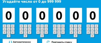 The well-known and beloved game “6 out of 36”. It has very simple rules and is played on Saturdays - once a week. The size of the main prizes is fixed - from 100 to 20 thousand rubles. Every fourth ticket is considered winning. Even those who were able to guess at least two numbers receive a prize. If no one wins the super prize during the drawings, its amount is added to the prize of the new draw. Regardless of the situation, it cannot be less than three million.