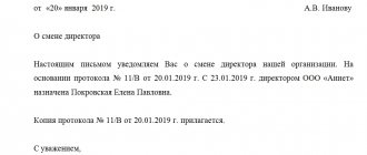 Образец уведомления о смене генерального директора, предоставляемого по запросу